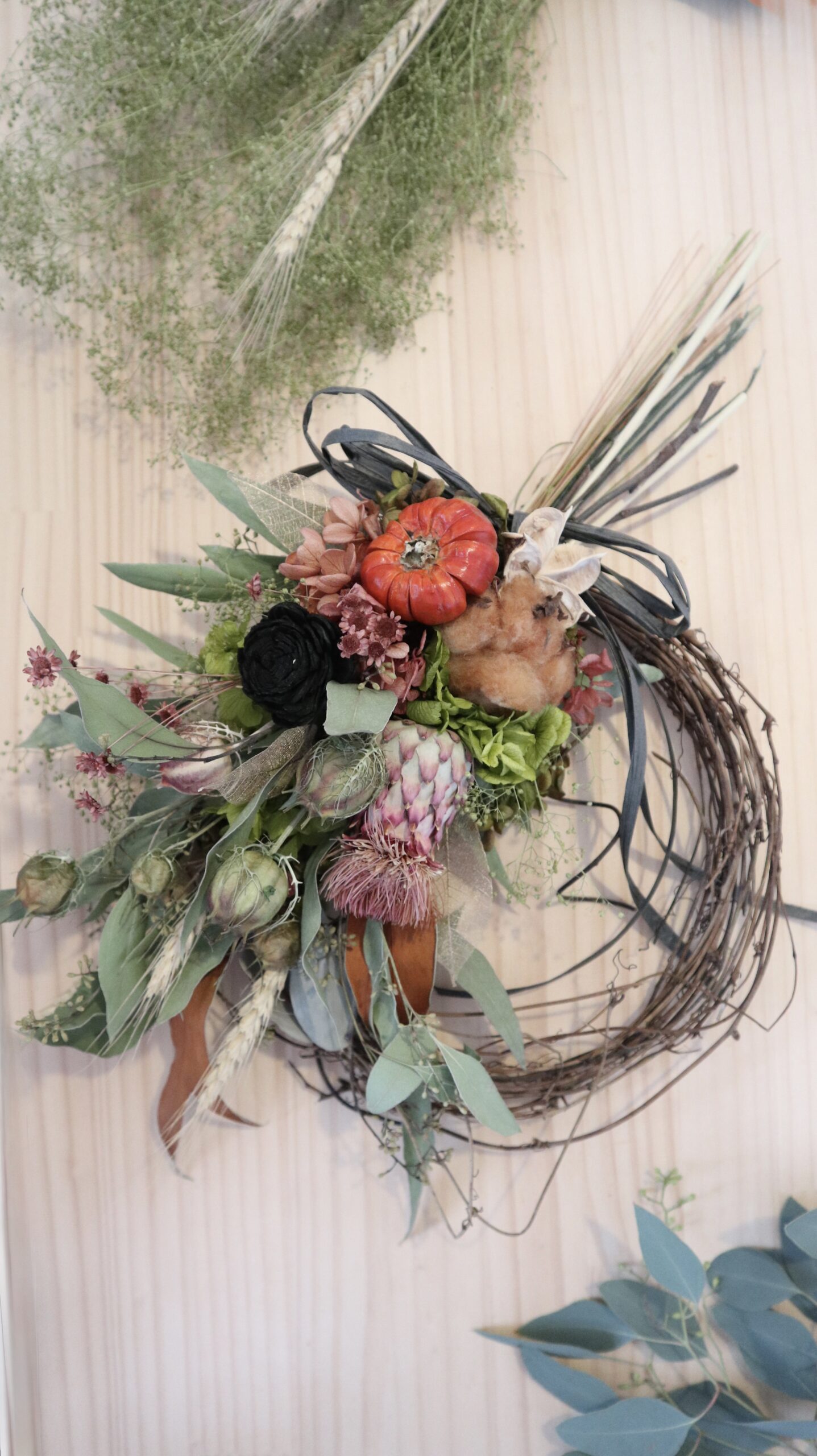 HOME > お知らせ LESSON > 9月後半〜10月1DAY たわわに実るスワッグリース