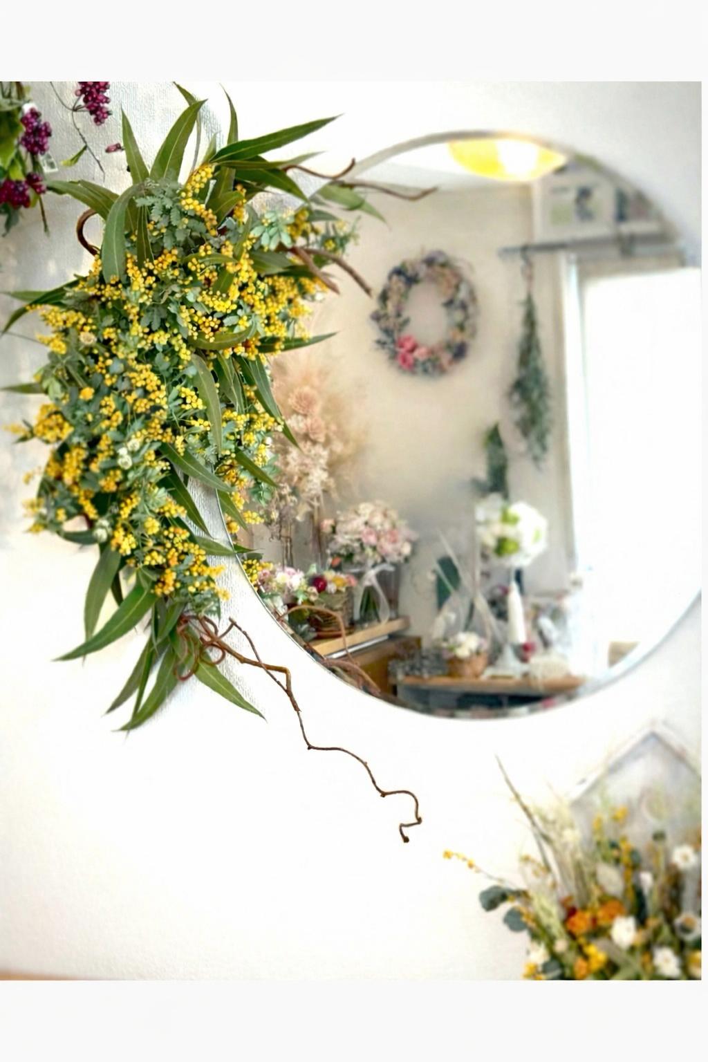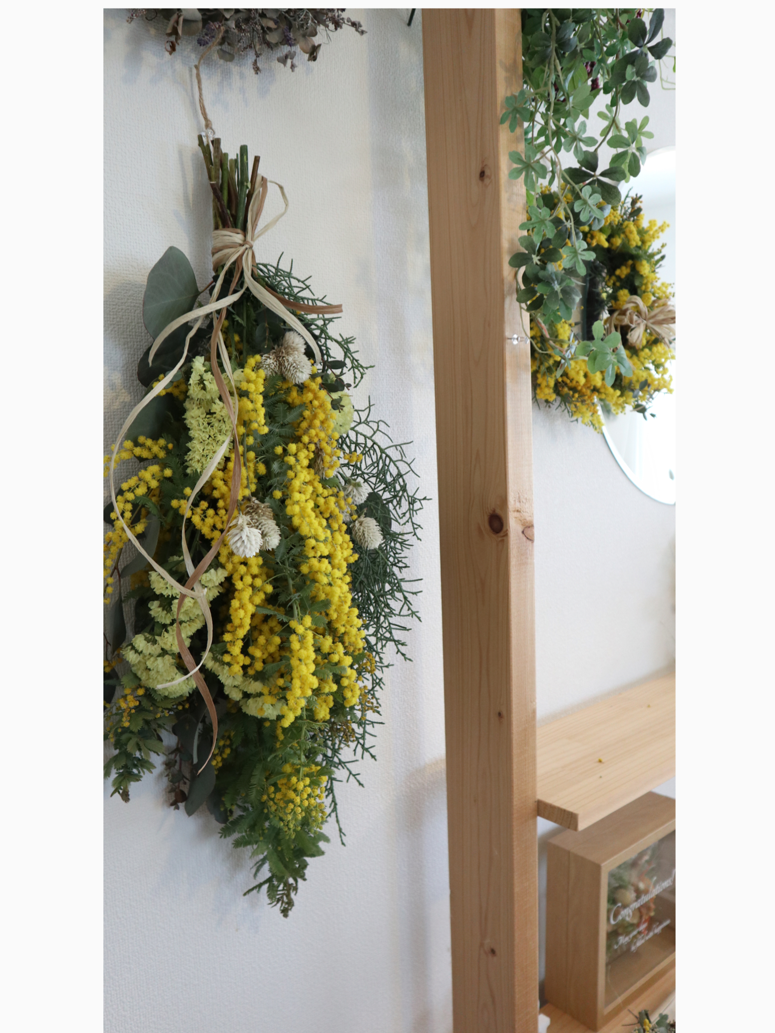 ミモザのリースまたはスワッグと、サイズを選択してご連絡ください