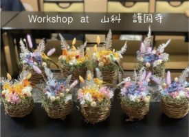 今年最後の出張ワークショップ。 伏見の瑞光寺様にて。 しめ縄リースのワークショップを行いました。 檀家さまや一般の方々にも広く募られ、幅広い年齢の方々にしめ縄飾りをお作りいただきました。 今回は、花材はほぼ同じものでご用 […]