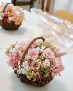 プリザーブドフラワーバスケットアレンジ